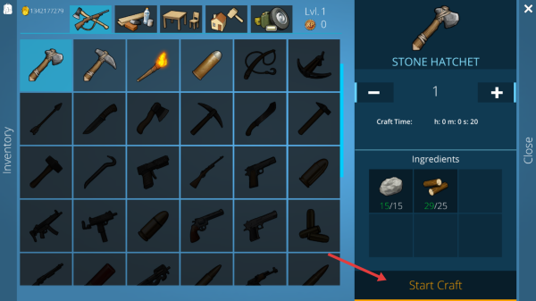 2、收集石头和木材,制作石斧,提升资源获取效率,增强生存能力。
