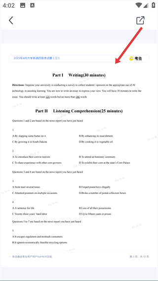 3、进入【我的下载】页面,找到已下载的真题,点击文件打开试卷内容。