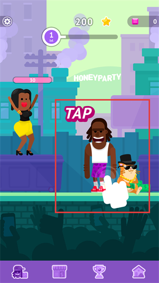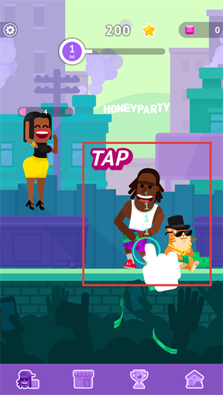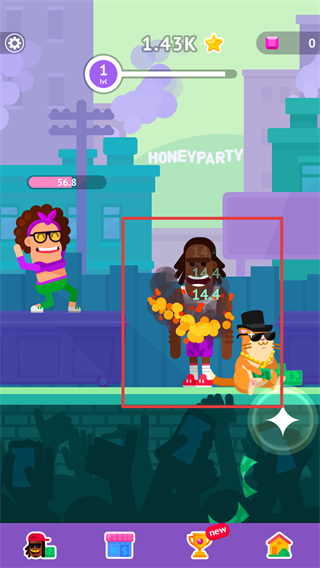 1、在派对场景中点击角色,触发互动获取初始资源,快速积累基础分数推进游戏进程。