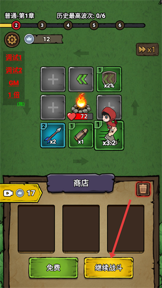 2、将装备放置完成后,点击【继续战斗】进入游玩。