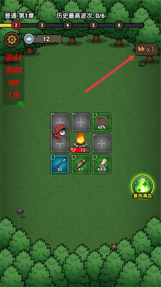 3、开始游戏后,点击箭头所指【x1】将速度调整为2。
