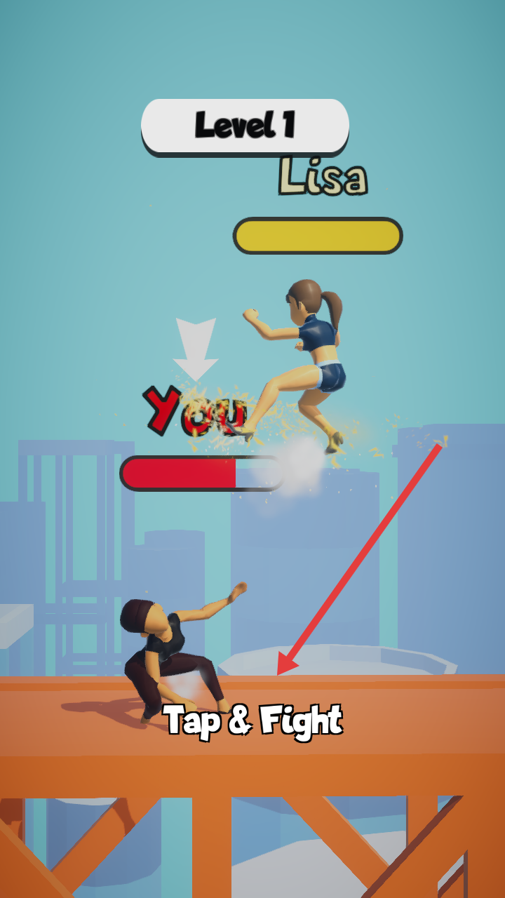 1、点击屏幕Tap&Fight,在Level1中与对手Lisa展开格斗对决。