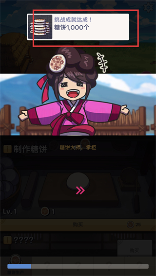 3、达成挑战成就(如制作1,000个糖饼),可获得相应的成就奖励,提升游戏的成就感和资源积累。