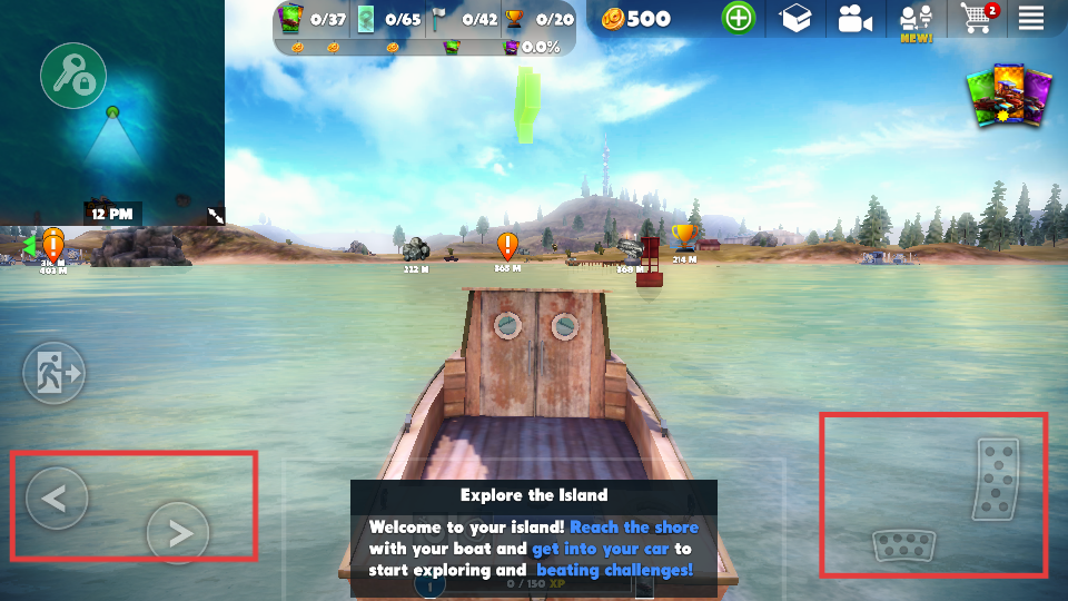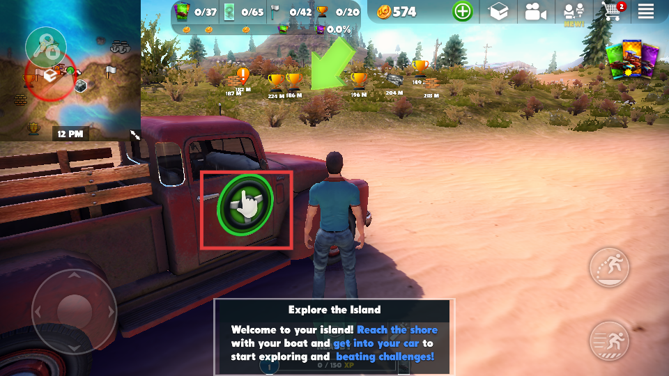 4、点击进入汽车的按钮,驾驶汽车,继续探索岛屿,完成游戏任务。