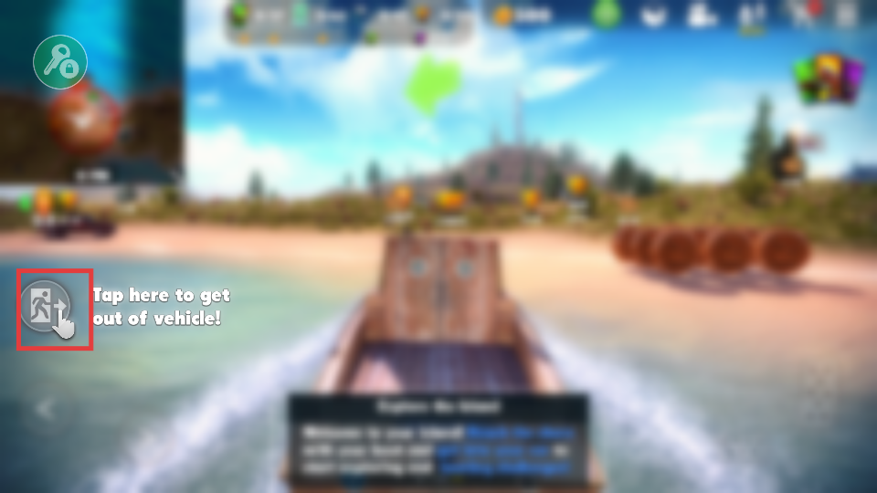 2、点击下车按钮,离开船只,准备在岛屿上开始探索。