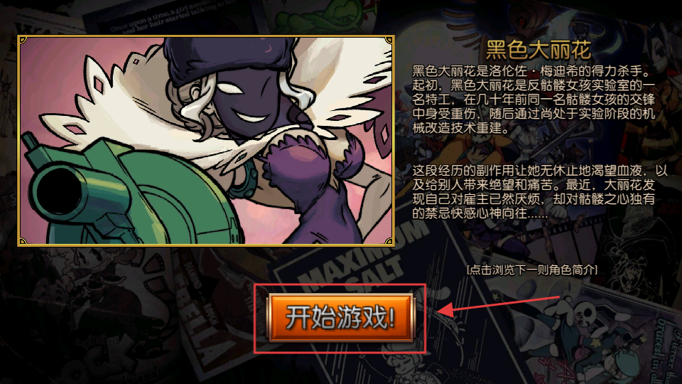 1、浏览【黑色大丽花】角色简介后点击【开始游戏】按钮,正式进入游戏开启探险与战斗之旅。