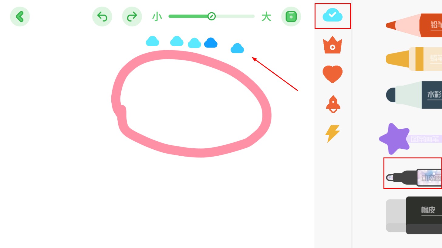 3、使用右侧的【动态画】工具,添加顶部云形装饰元素,让宝宝的画作更生动有趣。