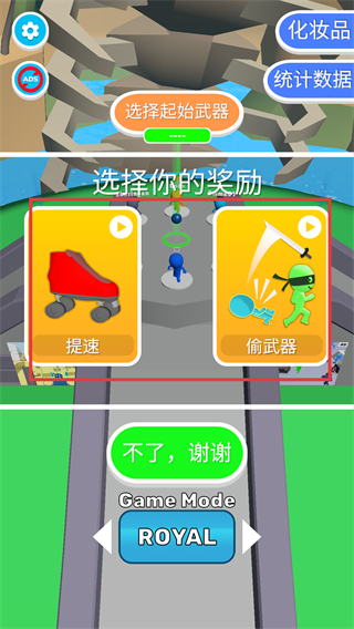 2、在奖励选择界面,可选择“提速”或“偷武器”等增益效果,这些效果可助力在战斗中获得优势,提升竞技表现。
