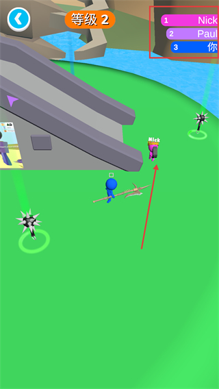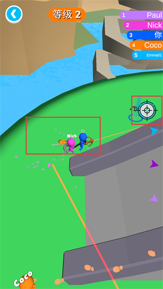 3、战斗中利用瞄准功能,攻击其他玩家(如Nick),夺取其武器,提升自身的战斗能力。