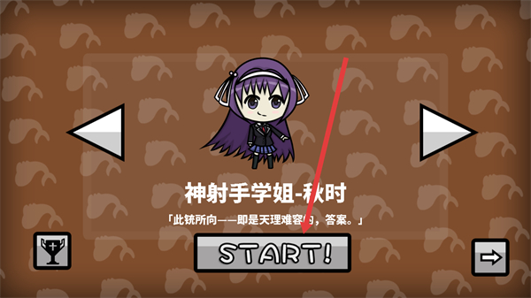 1、选择神射手学姐秋时角色,点击START按钮进入关卡,利用该角色射击优势推进。