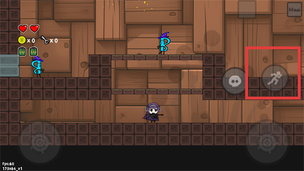 2、关卡内操控角色移动,借助右侧跳跃按钮避开怪物攻击,同时瞄准B形怪物射击。