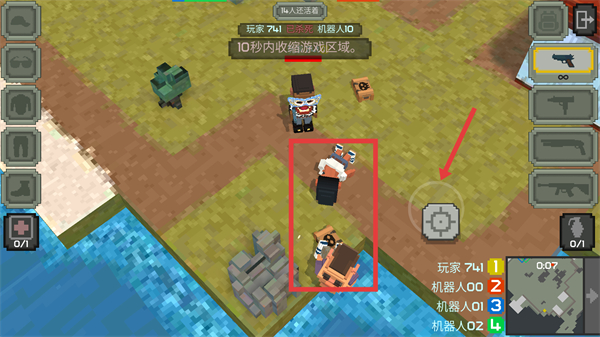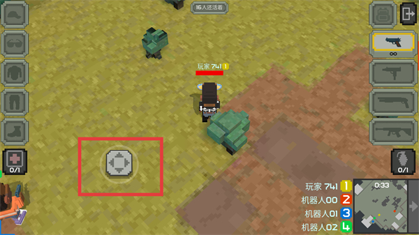 2、进入对局后,使用方框内【移动按钮】跟随队友行动,优先拾取武器,提升战斗能力。