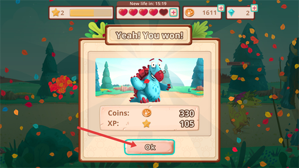 4、通关后获得奖励,点击【Ok】领取奖励。