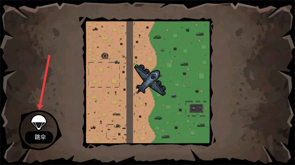 1、点击左侧【跳伞】按钮,选择地图区域进行跳伞,开始游戏。