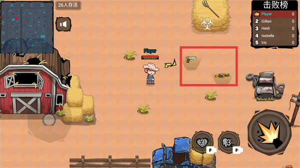 2、落地后收集红色框内的武器,武装自己,提升战斗力。