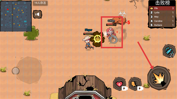 3、遇到敌人时,瞄准红色框内的敌人进行攻击,利用右侧攻击按钮释放技能,消灭敌人。