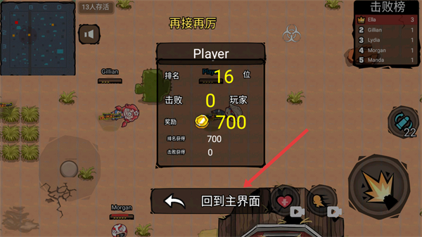 4、游戏结束后,点击【回到主界面】按钮,领取奖励,准备下一次战斗。
