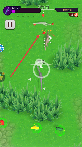 3、当等级提升后,可攻击比自己等级低的素食者,获取更多资源和经验,继续进化。