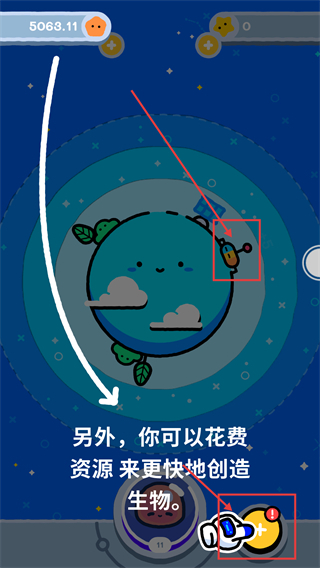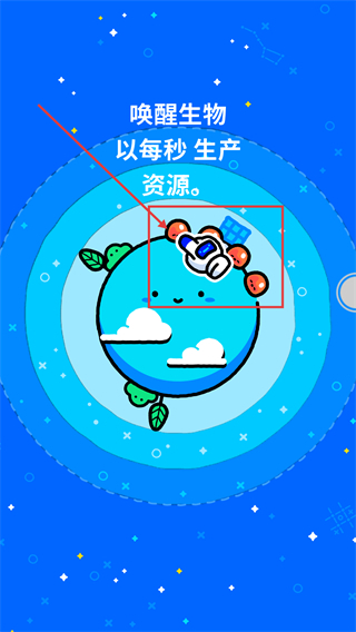 2、生成的生物会附着在星球上,这些生物会每秒自动生产资源,帮你积累游戏货币哦。