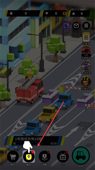 1、点击【藏品】按钮,可查看和管理收费站的人员、吉祥物等藏品,为后续经营做准备。