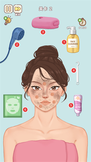 1、按照步骤使用【FACE-CLEANSER】等工具,依次完成脸部清洁、护理等操作。