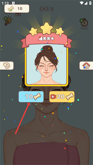 4、通关后点击领取【10】骨头奖励,积累资源解锁更多关卡。