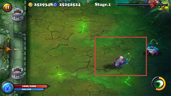 2、战场中出现敌方怪物,需利用已部署的防御塔攻击怪物,同时关注下方资源条(1000/1000),适时补充防御建筑。