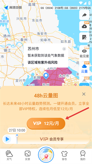 4、选择【云量】后,我们能看到开通【VIP-12元/月】就可查看48h云量图啦。
