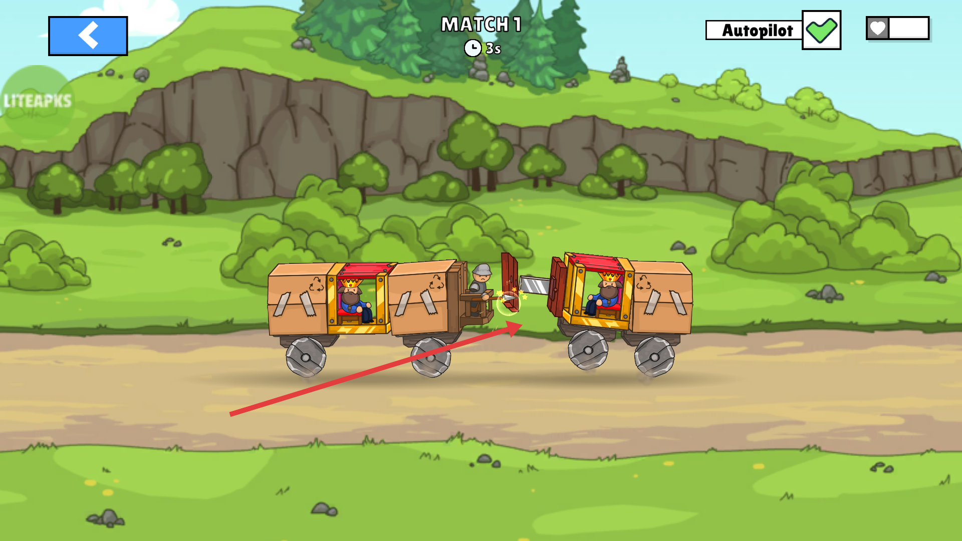 2、在对决中,操控战车利用武器(如长矛、锯片)攻击敌方战车,破坏其结构,使其失去战斗力。