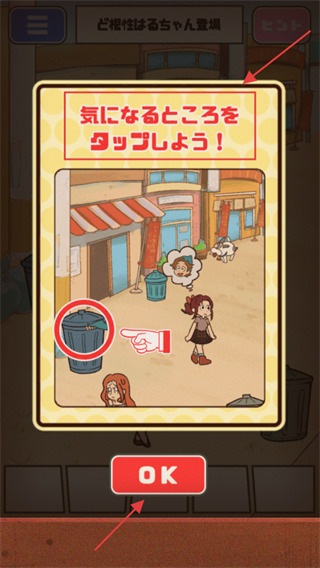 2、按照提示点击场景中的垃圾桶区域,再点击【OK】按钮,进入下一个解谜场景继续探索。