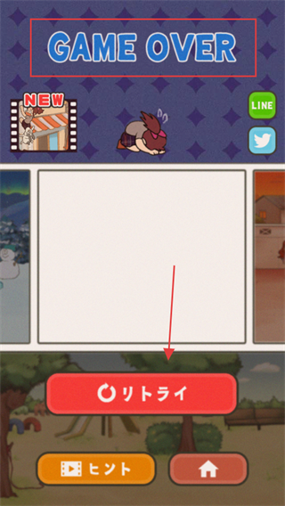 4、遇到【GAMEOVER】时点击重试按钮,重新开始当前关卡,继续尝试解开谜题完成目标。