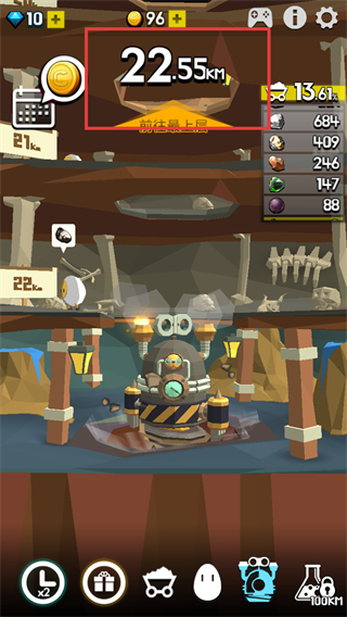 4、持续向矿山深层探索(如开采进度达到22.55km),解锁更多稀有矿石资源,扩大挖矿的资源获取范围,提升矿山的整体收益潜力。
