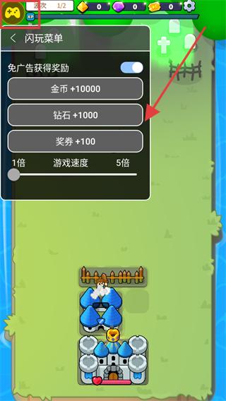 1、在【菜单】中开启免广告获得奖励功能,可领取钻石等,还能调整游戏速度,助力战斗。