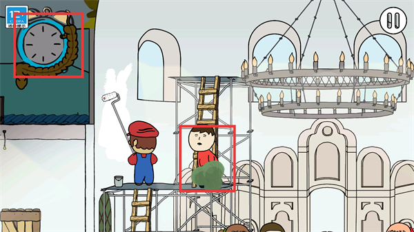 3、在建筑脚手架场景,关注时间和角色位置,与施工周边元素交互,推动解谜任务进展。