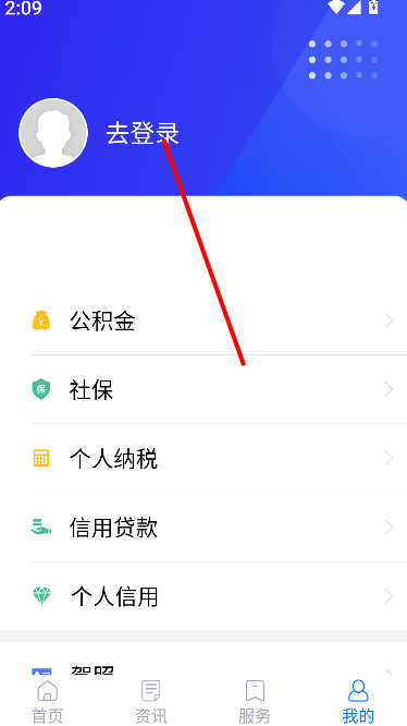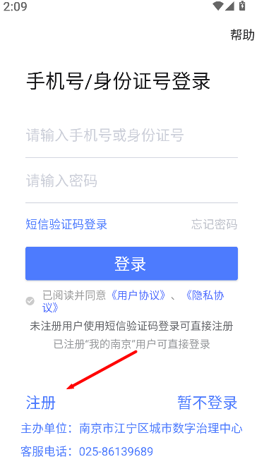 1、打开安装完成的《我的江宁》,进入首页后点击右上角的登录入口,进入账号登录页面。