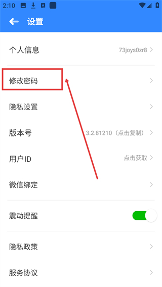 3、在【设置】页面,找到【修改密码】选项并点击,即可进入安全验证页面,准备进行密码修改操作。