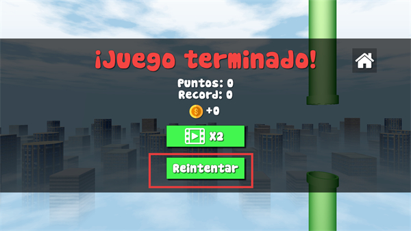 4、若游戏失败,点击“Reintentar”重新开始,总结经验,优化飞行时机和高度控制,争取突破更高记录。