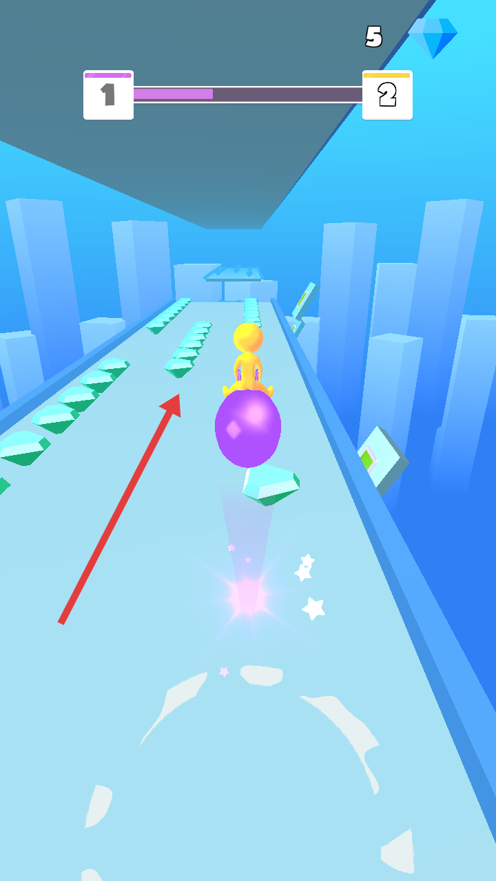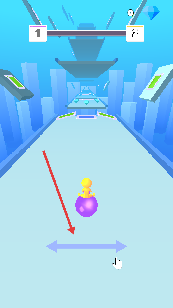 2、左右滑动屏幕控制角色移动方向,在赛道上收集钻石,提升分数,同时避开障碍物。
