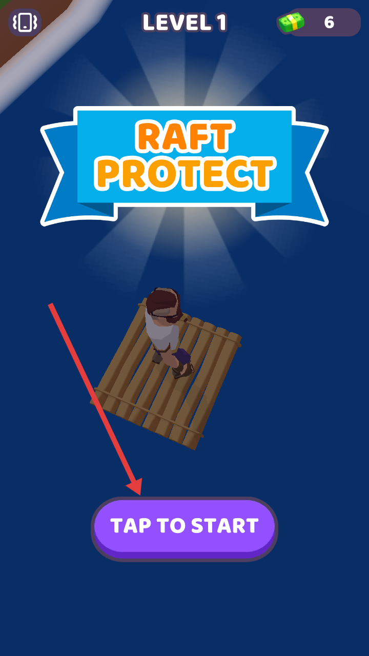 1、点击TAPTOSTART按钮开始游戏,操控木筏上的角色在河道中开启挑战。