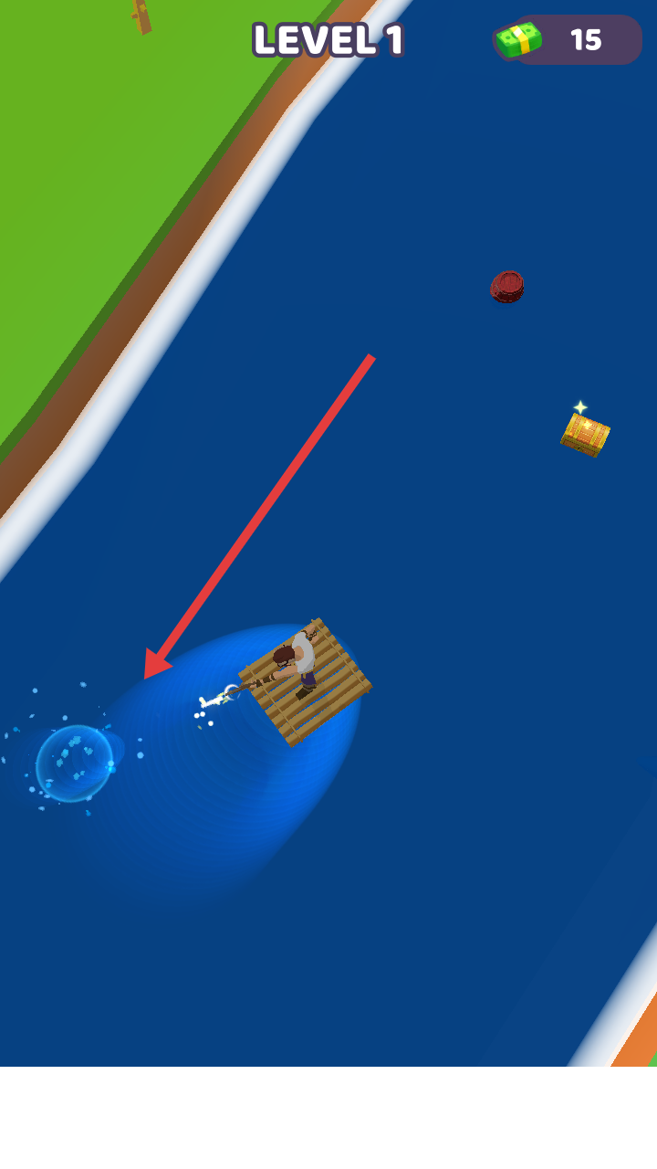 3、注意河道中的气泡和其他物品,合理规划木筏移动路线,确保顺利收集资源并避开危险。