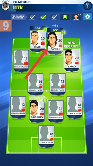 3、将签约的高能力球员(如D.CHIH)放置到球队阵容中,点击球员卡片,进入球员训练界面。