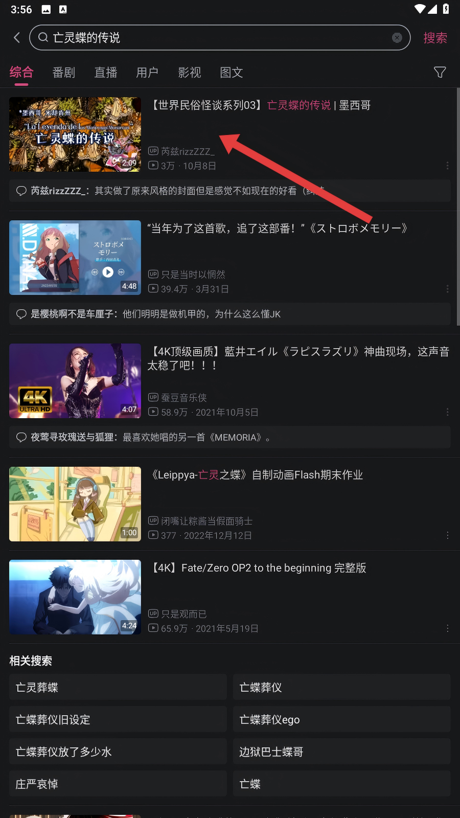 3、搜索结果出来后,会看到很多相关视频,咱们选择自己感兴趣的那个,点击它进入播放页。