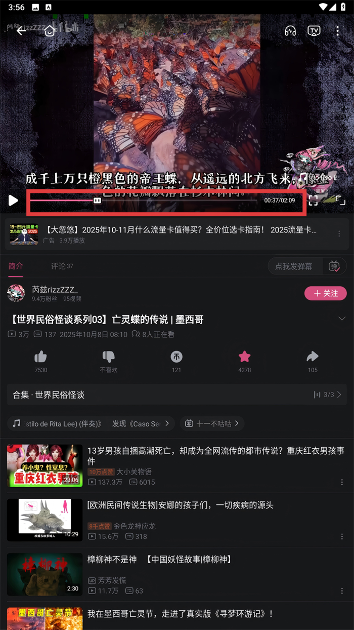5、在视频主页长按“点赞”按钮,会看到投币和收藏的变化。