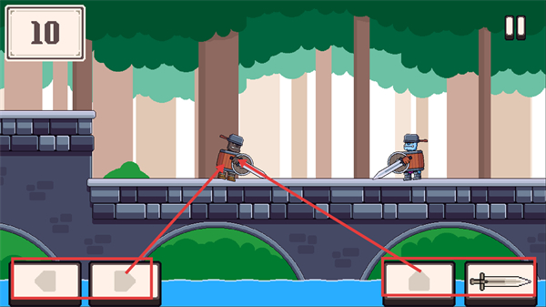 2、战斗中利用底部左右移动按钮操控骑士,右侧攻击按钮发起进攻,与敌人骑士展开对决。