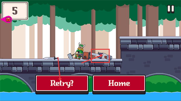 4、若挑战失败,点击“Retry?”按钮重新尝试,调整战斗策略,继续挑战关卡。