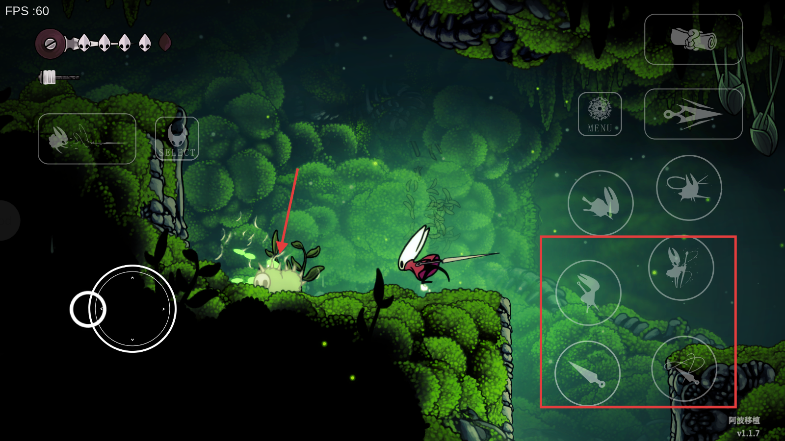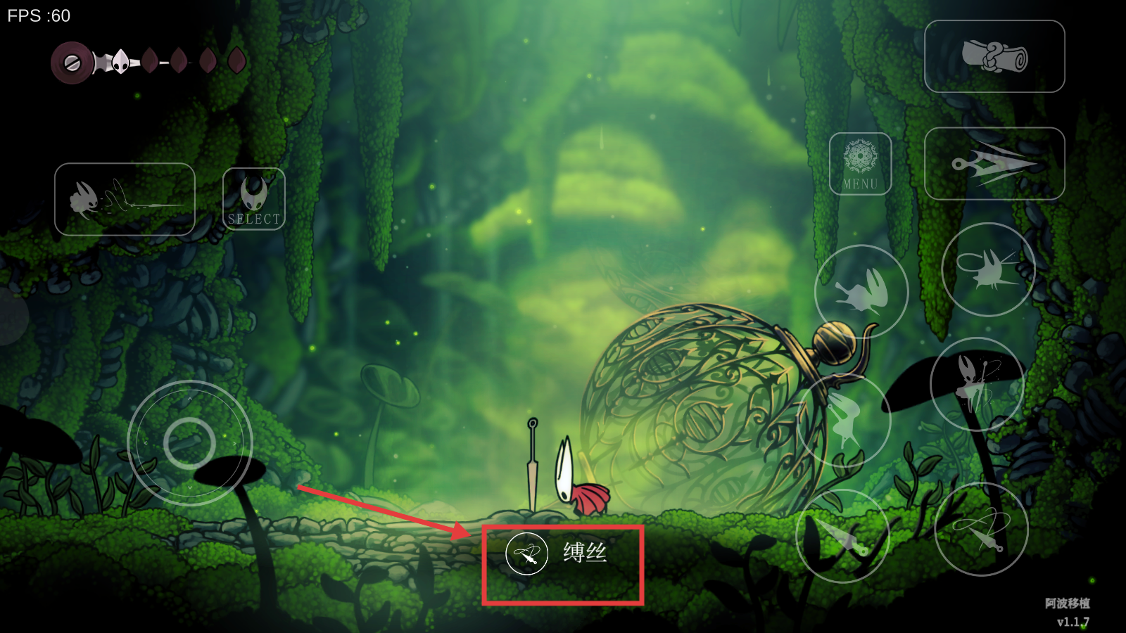 2、在绿色迷雾场景中,点击【缚丝】技能按钮,借助丝线快速移动探索隐藏路径与区域。