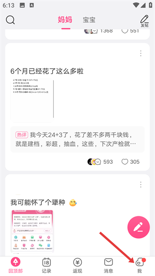 3、然后就能看到界面更换成怀孕模式界面了,点击底部美柚选项。