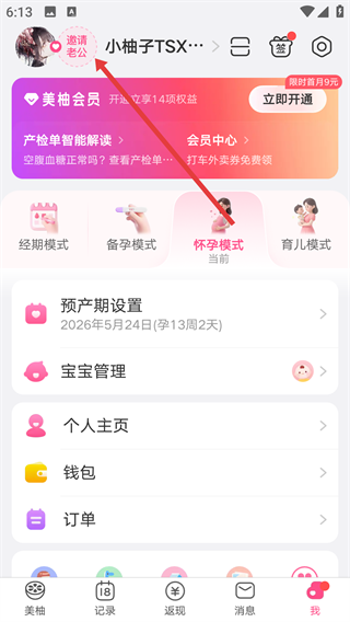 2、在个人页面点击头像旁的【邀请老公】,进入邀请界面,为后续操作做好准备啦。