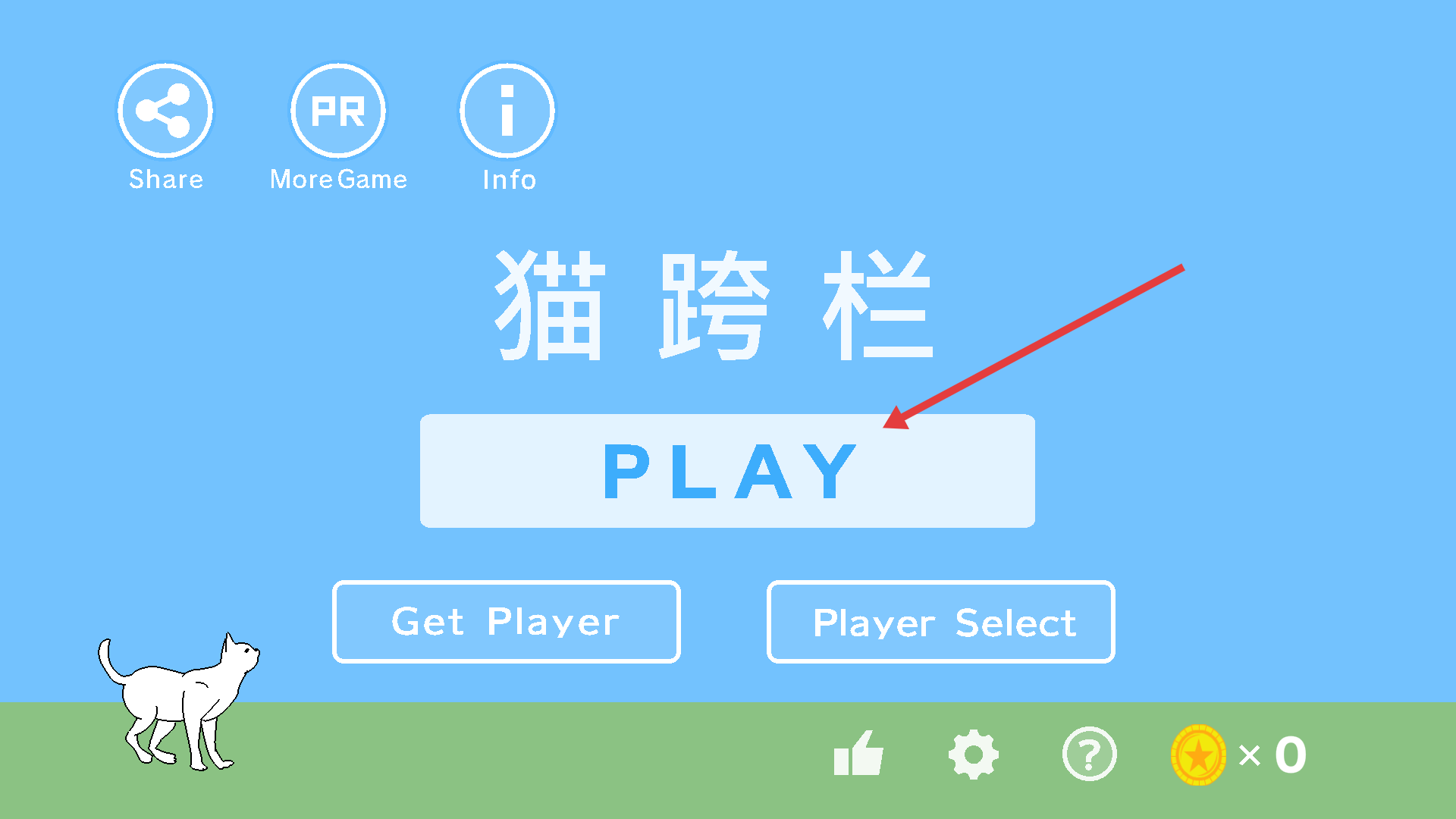 1、点击【PLAY】按钮,进入游戏选择界面,开启“猫跨栏”的冒险挑战。