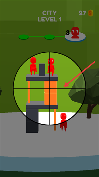 2、通过狙击镜瞄准目标,优先锁定高处或显眼的红色敌人,确保准星对准后射击。